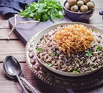 A dish made with lentils, rice, and meat (typically lamb or beef). Mansaf is often seasoned with a mix of aromatic spices, creating a dish that is both comforting and full of depth. This traditional dish is a celebration of the rich culinary heritage of Saudi cuisine.