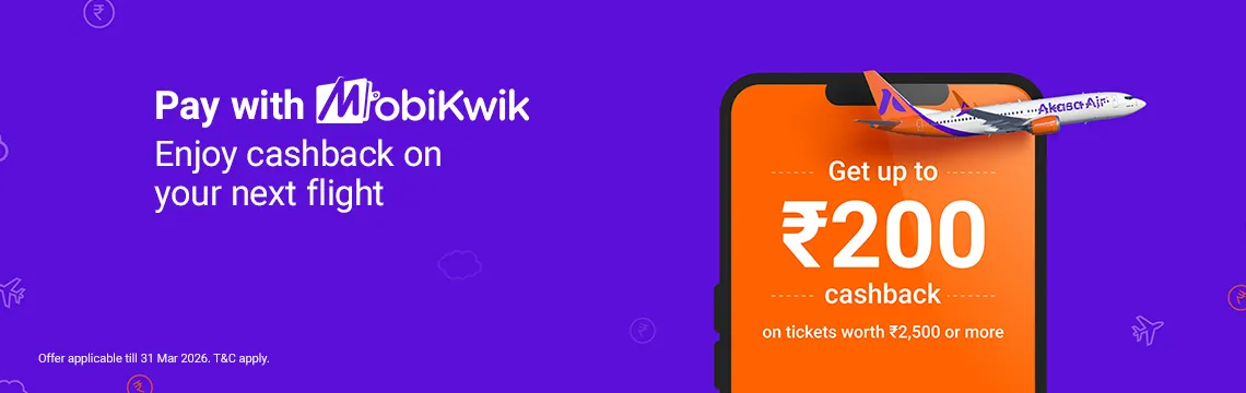 Enjoy cashback offers on your flight when you pay with MobiKwik.